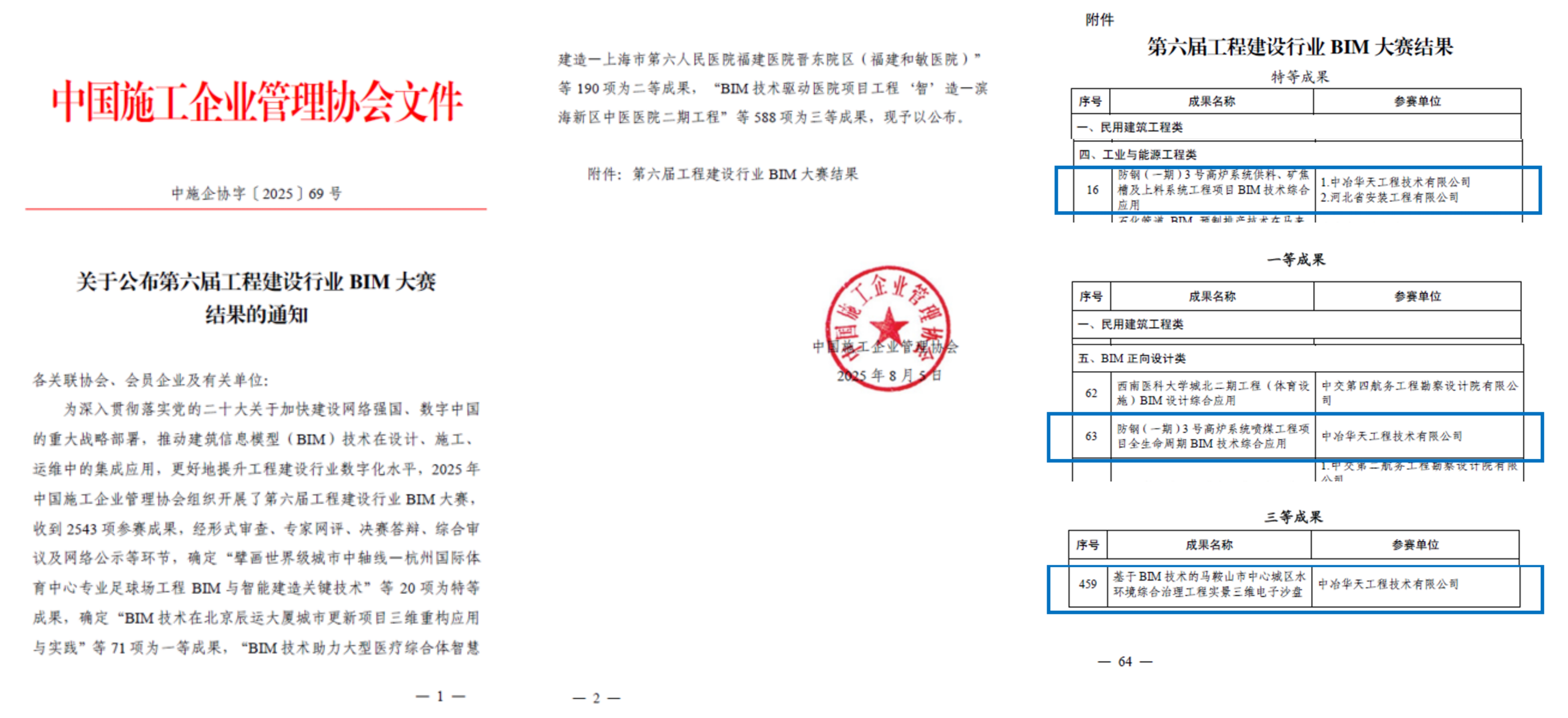 近日,中國(guó)施工企業(yè)管理協(xié)會(huì)宣布第六屆全國(guó)工程建設(shè)行業(yè)BIM大賽結(jié)果,中冶華天參賽作品“防鋼(一期)3號(hào)高爐系統(tǒng)供料、礦焦槽及上料系統(tǒng)工程項(xiàng)目”和“防鋼(一期)3號(hào)高爐系統(tǒng)噴煤工程”分別榮獲工業(yè)與能源工程類(lèi)“特等獎(jiǎng)”和BIM正向設(shè)計(jì)類(lèi)“一等獎(jiǎng)”,參賽作品“基于BIM技術(shù)的馬鞍山市中心城區(qū)水環(huán)境綜合治理工程實(shí)景三維電子沙盤(pán)”獲得市政公用工程類(lèi)“三等獎(jiǎng)”。獲得以上榮譽(yù),實(shí)現(xiàn)歷史性突破,不僅是對(duì)中冶華天項(xiàng)目建設(shè)成果的高度認(rèn)可,也集中展示了其工程數(shù)字建造創(chuàng)新能力,再次擦亮“中冶華天,綠色明天”品牌。